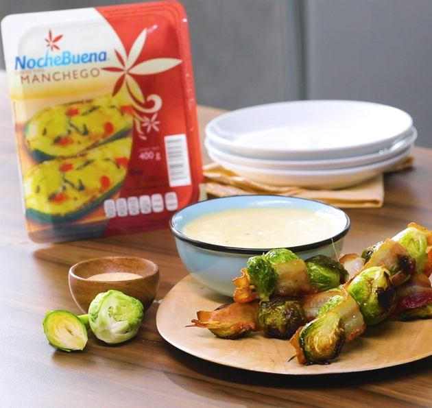 Brochetas de coles y tocino con Queso Gouda
