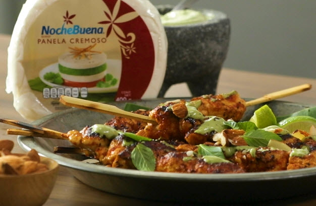 Brochetas de pollo al pastor con queso panela artesanal