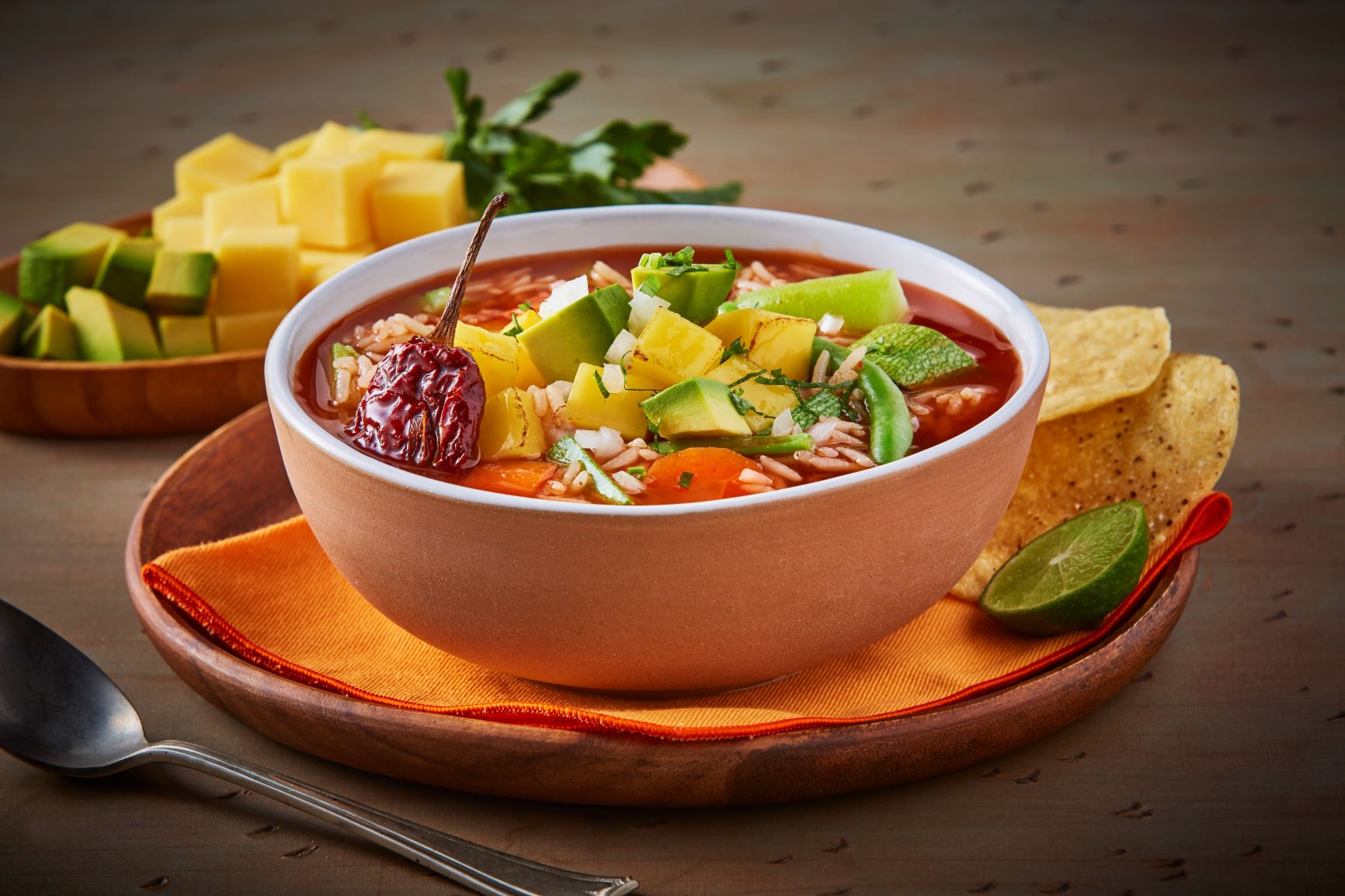 Caldo Tlalpeño con Queso tipo Manchego