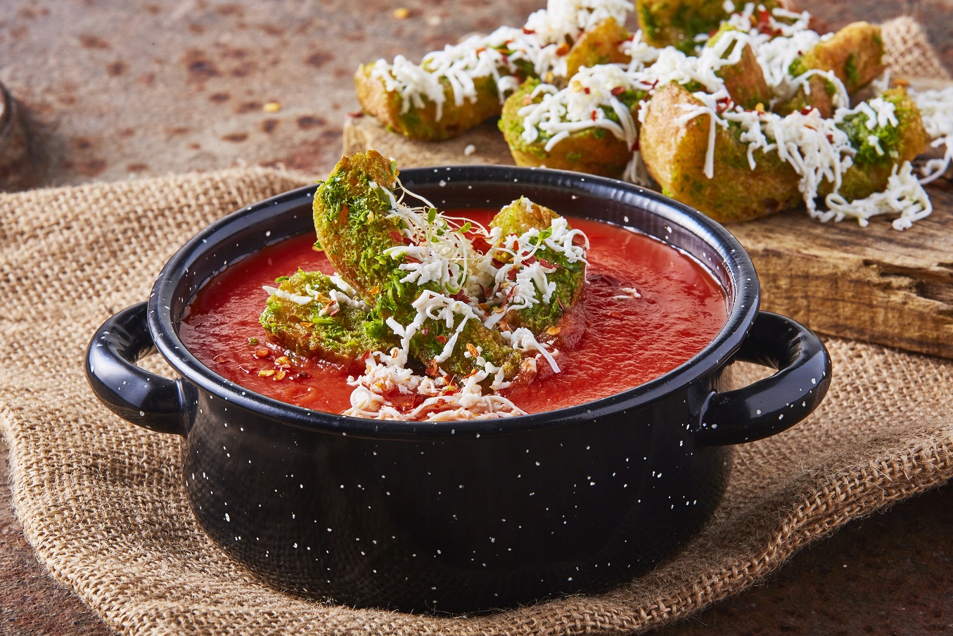 Crema de jitomate con Queso Panela Cremoso