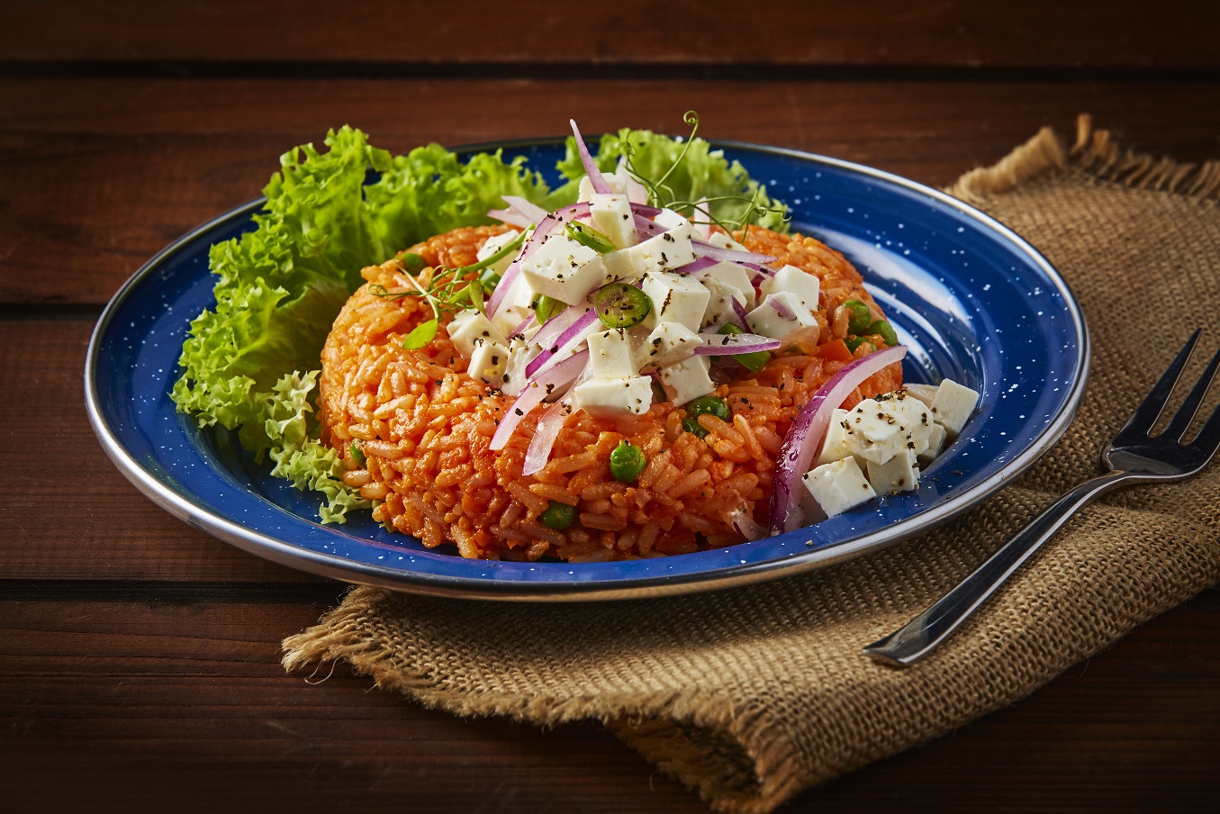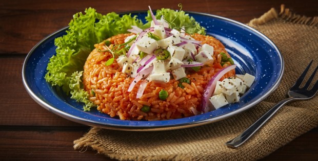 Ensalada de arroz rojo con queso panela reducido en grasa