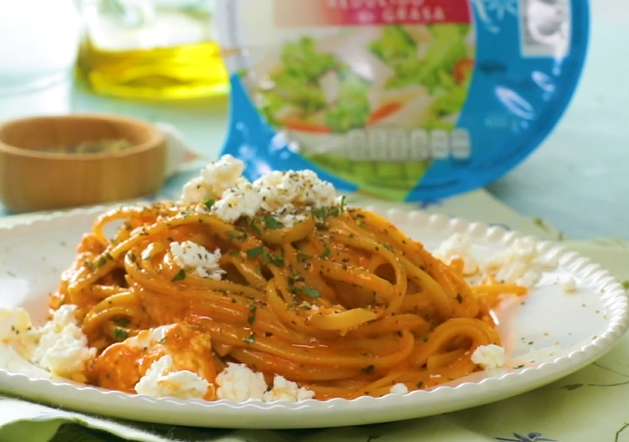 Fetuccini con salsa de pimiento rostizado y Queso Panela