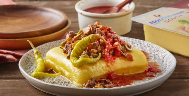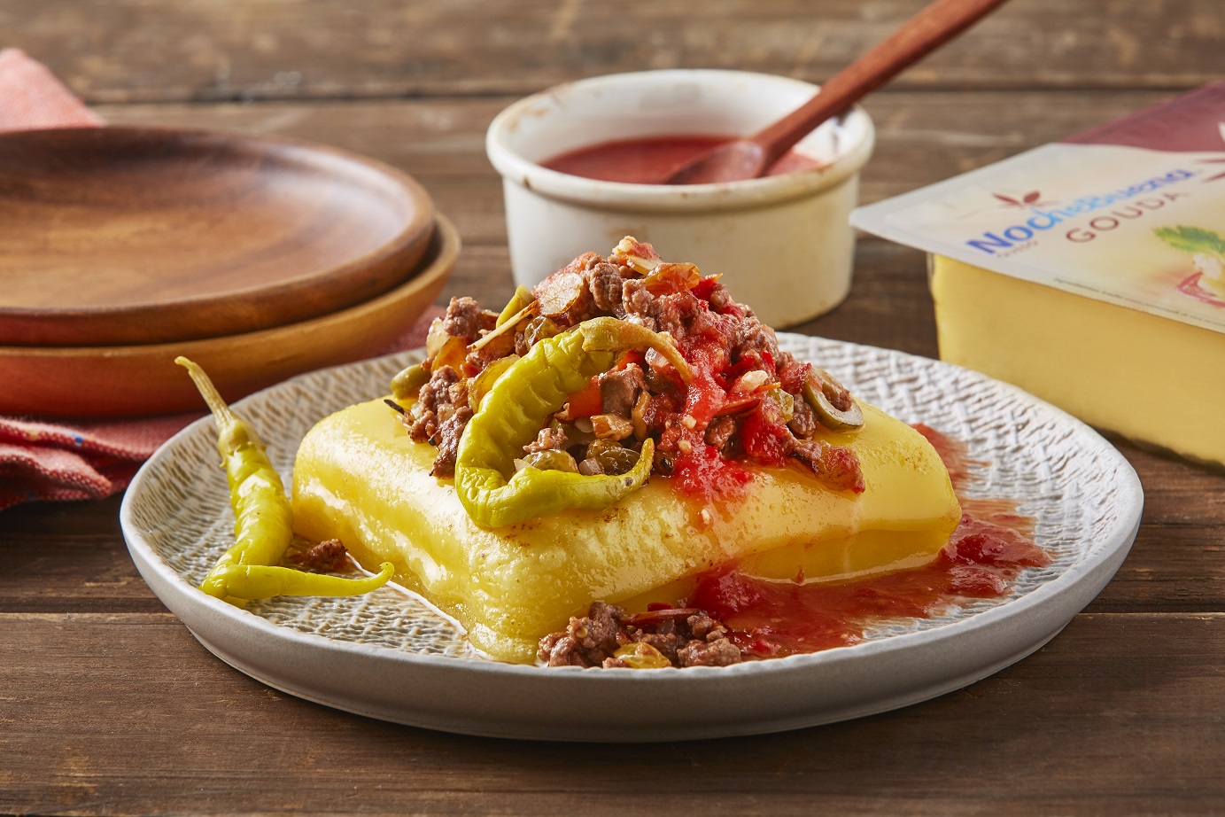 - Ahueca el queso Gouda cortando un poco del queso para que sirva como plato.
