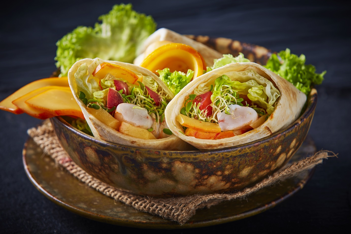 Wrap de camaronas con queso port salut