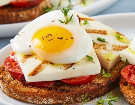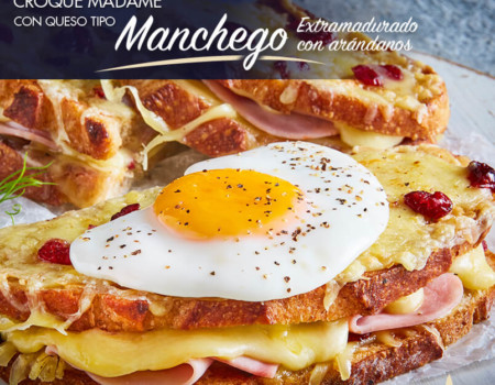 Croque Madame con queso tipo Manchego Extramadurado con arándanos