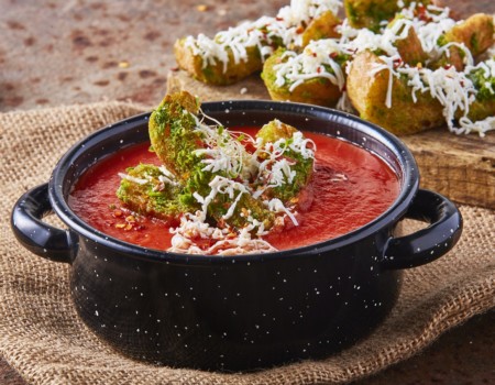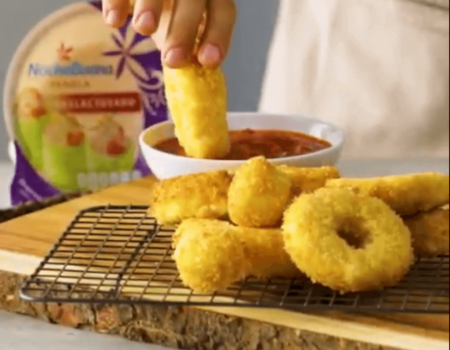 Aros de queso panela deslactosado con salsa de jitomate
