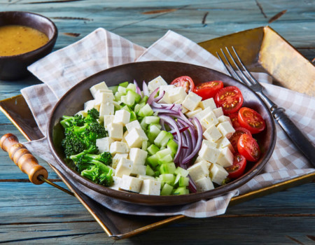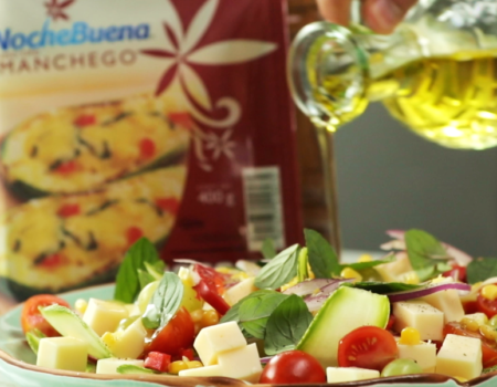 Ensalada con Queso Tipo Manchego y pasta vegetariana