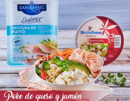 Poke de quinoa con queso panela y pechuga de pavo
