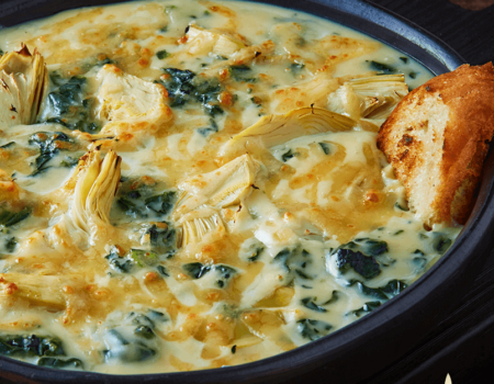 Dip de alcachofas y espinacas con Queso Tipo Manchego Extramadurado Ahumado