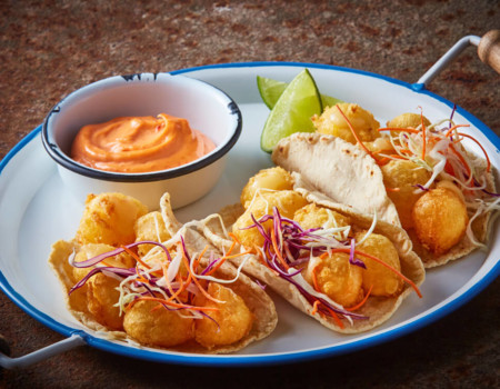 Taquitos tipo baja con cubitos de queso gouda capeado