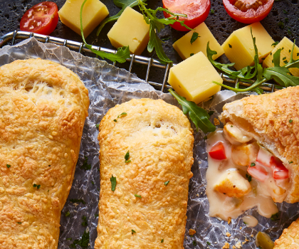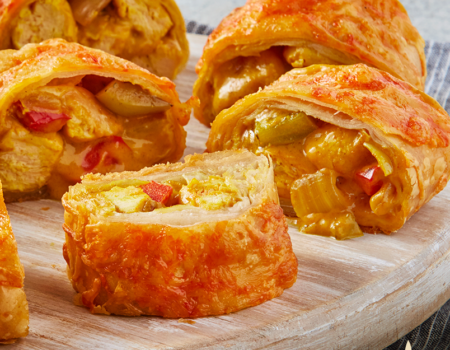 Strudel con curry y salsa de Queso Port Salut y Queso Ahumado