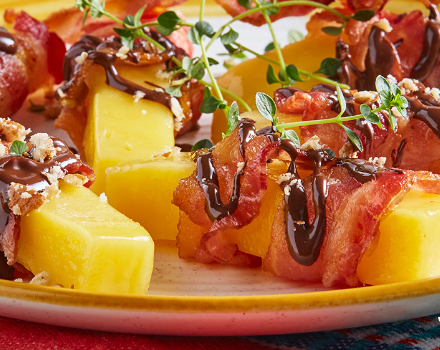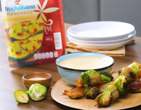 Brochetas de coles y tocino con Queso Gouda