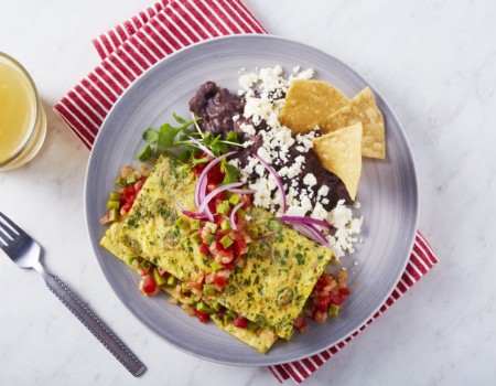 Omelet de cilantro y chile serrano relleno de Queso Panela