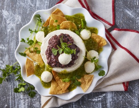 Mole verde con queso panela cremoso