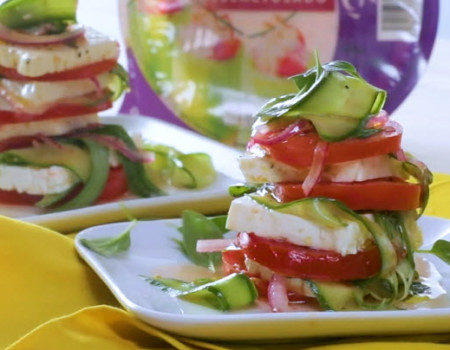 Torre de pepinillos y queso panela deslactosado