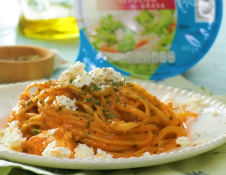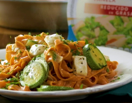 Fetuccini con salsa de pimiento rostizado y Queso Panela