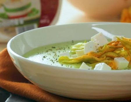 Crema poblana con flor de calabaza y queso panela cremoso