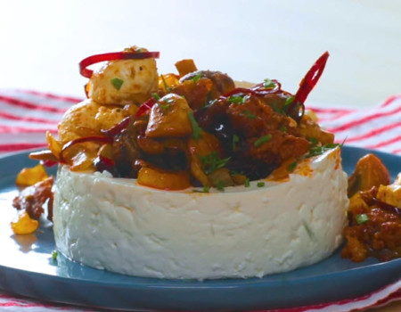 Queso panela relleno de champiñones y chorizo