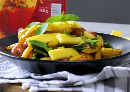 Ensalada Tibia de Papa con Espárragos y Queso Gouda