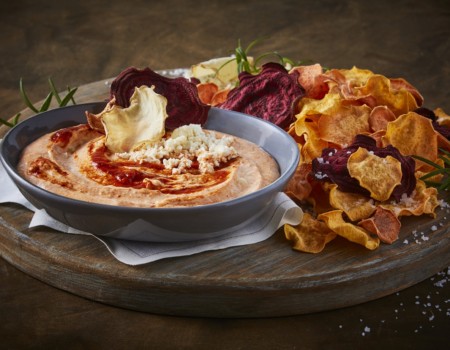 Dip de Panela y chipotle con chips de camote