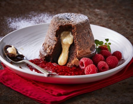 Fondant de Queso tipo Manchego con salsa de zarzamora