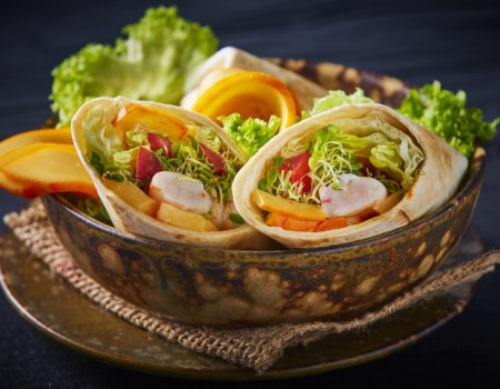 Wrap de camaronas con queso port salut