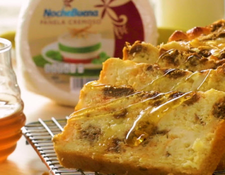 Panqué de elote y chilorio con Queso Panela