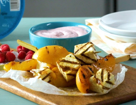 Brochetas de durazno y Queso Panela