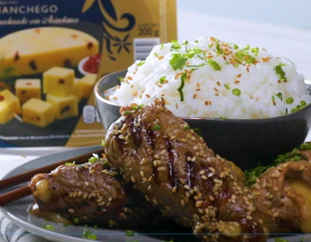 Brochetas de ribeye triyaki con Queso tipo Manchego