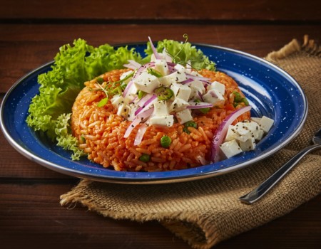 Ensalada de arroz rojo con queso panela reducido en grasa