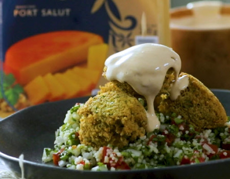 Falafel con queso manchego con arándanos