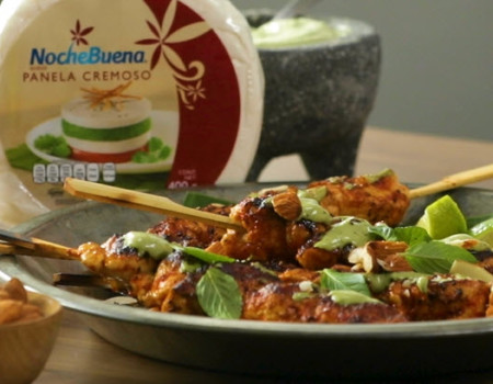 Brochetas de pollo al pastor con queso panela artesanal