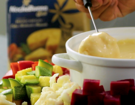Fondue con vegetales con Queso tipo Manchego Extramadurado ahumado.